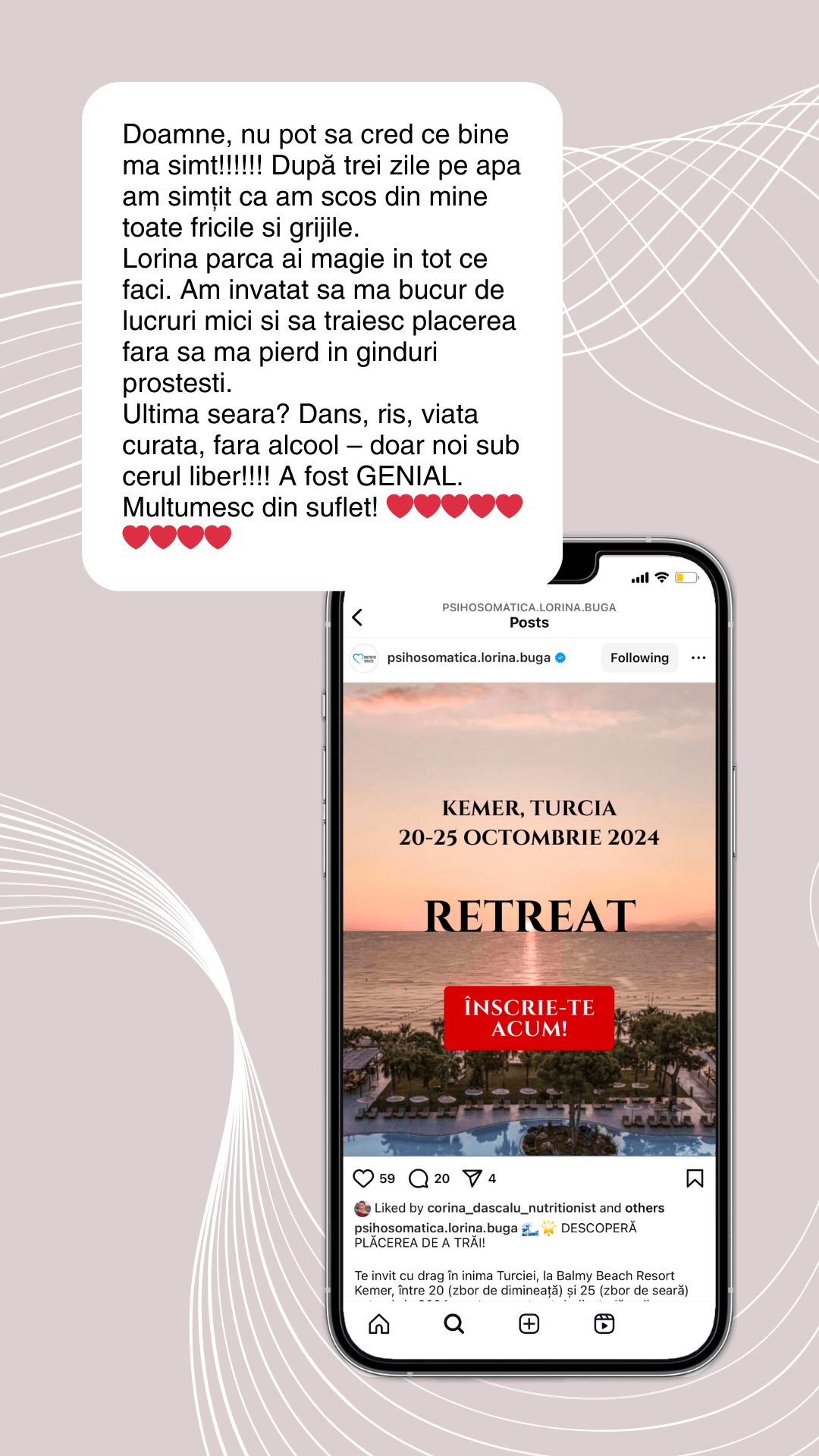 Corpul nostru este un sanctuar al emoțiilor și al experiențelor trecute. La nivel somatic, corpul păstrează aceste amintiri pentru a ne proteja și a ne ghida. Te invit să explorezi aceste practici în cadrul retreat-ului nostru în Kemer, unde, sub ghidajul psihologic, vei învăța să eliberezi tensiunile și să te reconectezi cu esența ta